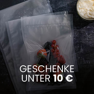 Für alle, die mehr investieren möchten, sind unsere hochwertigen Vakuumiergeräte ab 200 € das ideale Geschenk – ganz gleich, ob als Upgrade zum bestehenden Gerät, als Einstieg in die Welt des Vakuumierens oder als leistungsstarke Ergänzung der Küchenausstattung.
